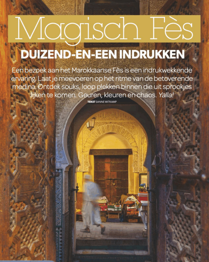 > Tekst en beeld voor vier pagina’s duizend-en-een-ervaringen in Fès en Vitamine D-bestemmingen, 48 uur in Rotterdam, en een Q&A over PFAS voor Santé.