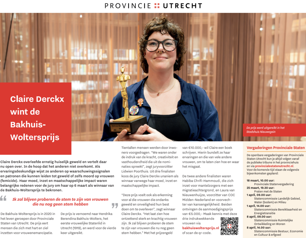 > Communicatiestrategie, -middelen en ondersteuning bij de organisatie van de Bakhuis-Woltersprijs: een podiumprijs van de Provincie Utrecht voor krachtige initiatieven van vrouwen.